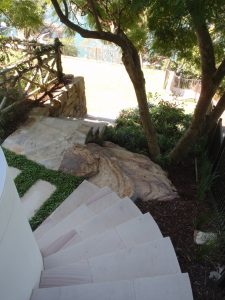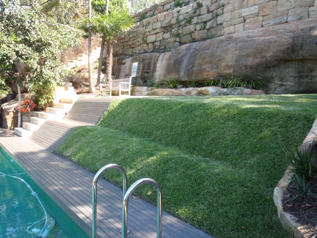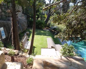 This was a full transformation and a privileged undertaking by the Abloom team. Large sandstone boulders from the property were recycled by cutting them down for use in creating beautiful, strong sandstone retaining walls, stepping stones and steps. In addition, a full landscaping service of turfing, planting, pool surrounds and irrigation was completed. A garden to envy and thoroughly enjoyed by the client.